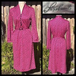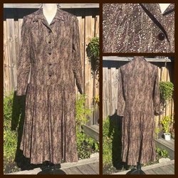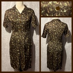 Fin brunvit klänning med knäppning fram. Markerande band bak. Fint skick. Akryl troligtvis.