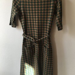 Snyggt stickad mjuk ullklänning med den tjusigaste bården i mustiga färger. Tröjan har en rak passform och rund halsringning med 3/4 ärmar. Köpt i en vintagebutik i Danmark. Mycket bra skick.