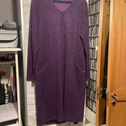 Svart klänning med långa ärmar och ribbad textur. Klänningen har en rund halsringning.