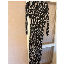 Lång klänning med halterneck och ett iögonfallande mönster i beige och svart. Klänningen har en avslappnad passform.