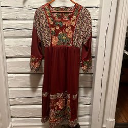 Långärmad klänning i en mörkblå nyans med knappar framtill. Klänningen har en rund halsringning.