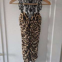Långärmad klänning i spets med v-ringning. Klänningen har en figurnära passform och når till anklarna. Spetsmönstret är genomgående över hela klänningen, inklusive ärmarna och halslinningen.