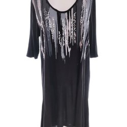 Med 3/4-långa ärmar och en rakt skuren passform är denna klänning både bekväm och elegant. Den perfekta kombinationen av stil och komfort gör den till en mångsidig och användbar del av din garderob.
