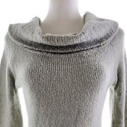 THEORY Stickad Klänning för Dam Grå L Lång ärm Ull Draperad urringning
