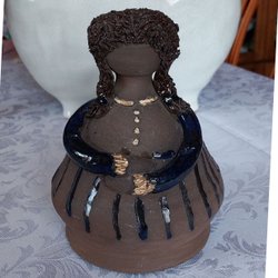 Resår i ryggen. Uddig kant nertill. Nätmönster i ärmarna. Den har en underklänning i polyester.