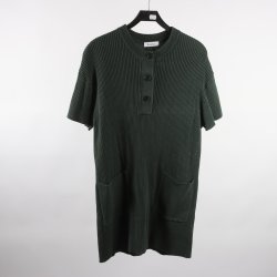En olivgrön klänning med korta ärmar och en dragkedja i sidan. Klänningen har en enkel, tidlös design som passar bra för både vardag och fest.