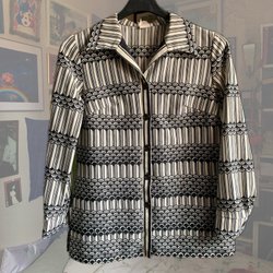Originell blus i bomull. Knäppt fram. Storleksmärkt M. Bra skick. Axelvaddar.