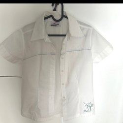 Snygg blus med knäppning fram och i ärmslut. Knytband vid hals. Stretchig polyester. Bra skick. Etikett otydbar.