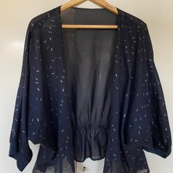 Snygg blus i stretchig polyester. Dragkedja i ryggen. Knytband i halsen. Fint skick.