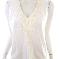 Versatil och tidlösDenna stilrena Simple wish Blus i storlek M är det perfekta tillskottet till din garderob. I en vacker beige färg och med vackert Spetsbroderi är denna ärmlösa blus både stilfull och elegant. Den är lätt att matcha och passar perfekt för alla tillfällen, vare sig det är för en dag på jobbet eller en kväll ute på stan.