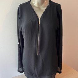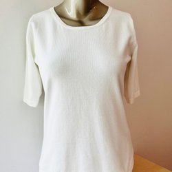 Vit spetstopp i stretchiga mjukt material från Taifun med långa ärmar och en vågig halsringning. Toppen har ett blommigt spetsmönster över hela plagget och ett tunt foder.