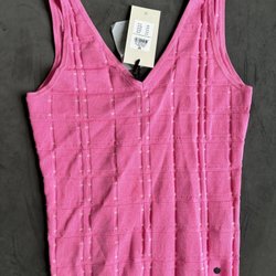 Svart ärmlös blus, i storlek S, med spetsdetaljer och volanger. Blusen har en hög hals med volang och knäpps med knappar i nacken. Mycket fint skick.
