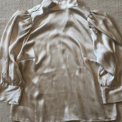 En vacker vit blus med hög krage och puffärmar. Blusen är i en lätt och luftig kvalitet.