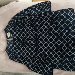 Ljusblus med ett blommönster i svart och vitt. Blusen har en v-ringning och vida ärmar. Från Vero Moda, storlek XL.