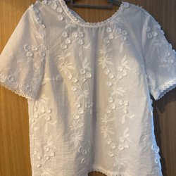 En vit blus med en rund halsringning och korta ärmar. Toppen har en enkel design och är perfekt för både vardag och fest. Strl L