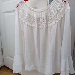 Vit ärmlös blus med V-ringning och broderade detaljer. Blusen har en rundad nederkant. Använd endast vid något tillfälle.