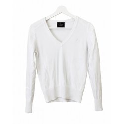 Vit, stickad tröja med långa ärmar. Tröjan har en vid urringning baktill.