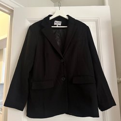 Rutig kavaj från NA-KD med dubbelknäppning och fickor fram. Kavajen är i storlek 36 och i något oversize model