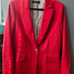 Elegant och stilren ZARA-kavaj i krämvitt med svarta kontrastdetaljer längs krage, fickor och kanter. Dubbelknäppt modell i lyxig viskos med lätt glans – perfekt både till vardag, kontor och fest.