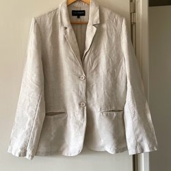 En kavaj med en knapp framtill och två fickor. Ärmsluten har tre knappar som detalj. Kragen är klassisk med slag.