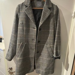 Elegant svart kappa från Lindex. Den har en stilren design med en hög krage och dragkedja framtill. Perfekt för både vardag och fest.