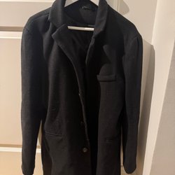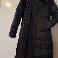 Elegant svart kappa frå h&m med huva och knyt band i midjan. Kappans design har en modern och stilren look, perfekt för både vardag och festligare tillfällen. Den har en unik asymmetrisk nederkant som ger en extra touch av stil.