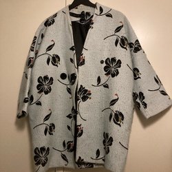 Långärmad jeanskappa med krage och knappar framtill. Kappan har fickor fram.