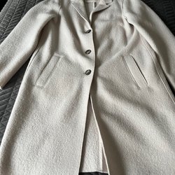 En elegant kappa med en stor, fluffig krage som ger en lyxig känsla. Kappan har ett knytband i midjan som framhäver figuren och en knappdetalj vid kragen. Den är perfekt för att komplettera en sofistikerad look.