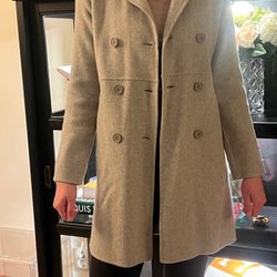 Elegant kappa med ett klassiskt rutmönster. Den har en rak passform, krage och knäppning framtill. Två fickor fram.