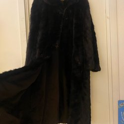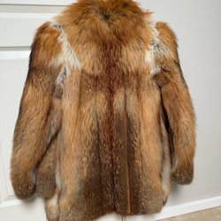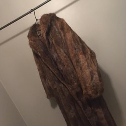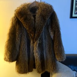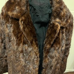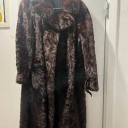 Elegant brun päls med dubbelknäppning och bred krage. Pälsen har en klassisk silhuett och en midjerem baktill för en smickrande passform. Perfekt för att hålla värmen med stil.