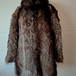 Italiensk brun/grå äkta blåräv pälskappa. Det står ingen storlek i den men jag uppskattar den till en L. Se måtten och jämför med någon kappa som du har hemma för att vara säker på att den passar. Armhåla till armhåla ca: 56cm, Längd ca: 90cm. Mycket fint skick.