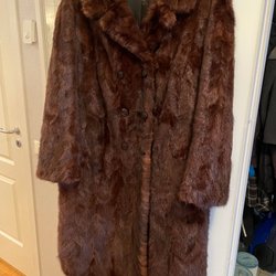 Minkpäls, vintage. Passar storlek M eller 38-42. Jag är 178 cm lång och den går ner till knäna. Rak passform, ej oversized eller figursydd.