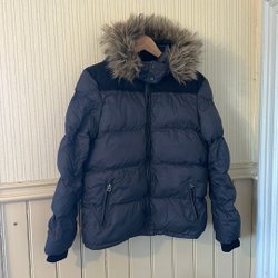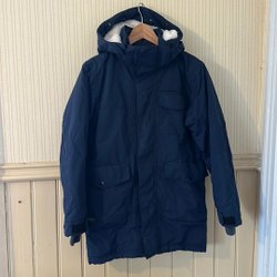 I mycket fint skick! Fast huva men skinnet går att ta av, huvan är även skinnfodrad invändigt. Storlek dam L se mått; längd 80 cm, bredd mätt under ärmhål och rätt över bröstet 58 cm, ärmlängd från ärmhål och ned 50 cm.