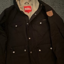 Varm och skön jacka från Monki. Dragsko i midjan, fleecefodrade fickor och mudd i ärmen. Bra skick. Storlek XS men funkar på en storlek S också.