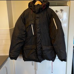 Mörkgrön Didriksons jacka med justerbar huva, dragkedja och knappar framtill. Jackan har flera fickor, inklusive en ficka med dragkedja på vänster ärm. Detaljer med logotyp på dragkedjor och knappar. Jättefint skick! Storlek 38/Medium