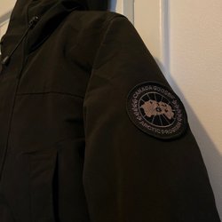 Svart McKinley dunjacka med huva. Jackan har en dragkedja framtill och är i storlek 36.