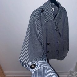 Jeansjacka i ljus tvätt med knäppning framtill och två bröstfickor med knappar. Jackan har en klassisk krage och manschetter med knappar.