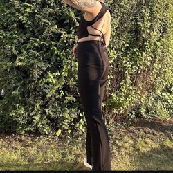 Svart pilejacka med dragkedja och huva. Jackan har två fickor fram.