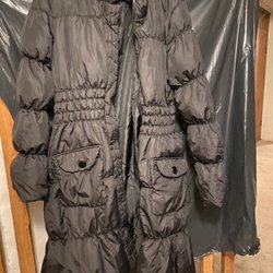 Vinterjakke med hætte og lynlåslukning. Jakken har en justerbar talje og flere lommer, hvilket gør den praktisk til hverdagsbrug. Den er designet til at give varme og komfort i koldere vejr.
