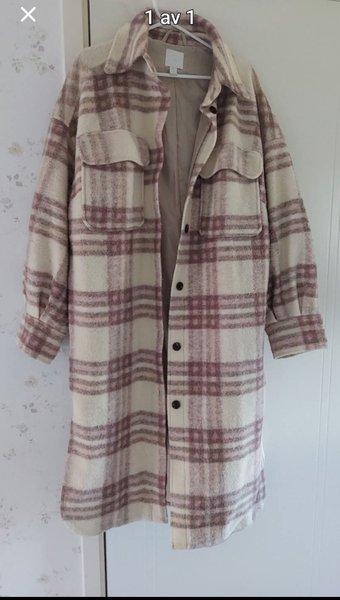 Lång skjortkappa i rutigt mönster med knäppning framtill och två bröstfickor. Från hm. Nytvättat, från ett rök och djurfritt hem. Strl S men stor i strl så passar även M.