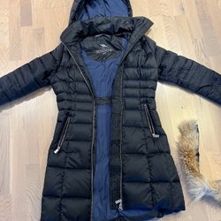 Grön vinterjacka med dragkedja och fickor. Jackan har en avtagbar huva. Storlek xs, från Cubus.