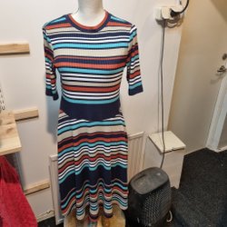 Svart tunn bomberjacka med ett blommigt mönster i rosa, vita och blå toner. Den har en dragkedja framtill och ribbade muddar vid halsen, ärmsluten och nederkanten. Det finns även en liten ficka med dragkedja på vänster ärm. Går att använda inomhus som en blus-jacka när det är kallt ute. Mycket fint skick. Köparen betalar frakten, jag samfraktar gärna. Lycka till!