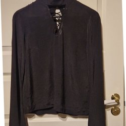 Eleganta svarta byxor från Filippa K med resår och dold dragsko i midjan samt fickor fram. Byxorna har en smal passform nedtill och markerade pressveck framtill som ger en stilren design. 68%polyester,29% viskos och 3% elastan. Använda men fint skick. Storlek small.