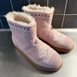 Fint set med bikini från H&M. Bikinin har ett paisley-mönster i olika färger. Överdelen har vadderade kupor och bygel och knäpps i ryggen, storlek 85C. Bikinitrosorna har knytband i sidorna med dekorativa detaljer och en söt volangkant, storlek 38. Bikinin är bara provad och tvättad.