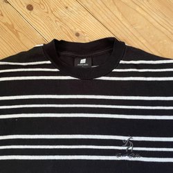 Ränder längs sidorna, logga i fram och text bak som detalj