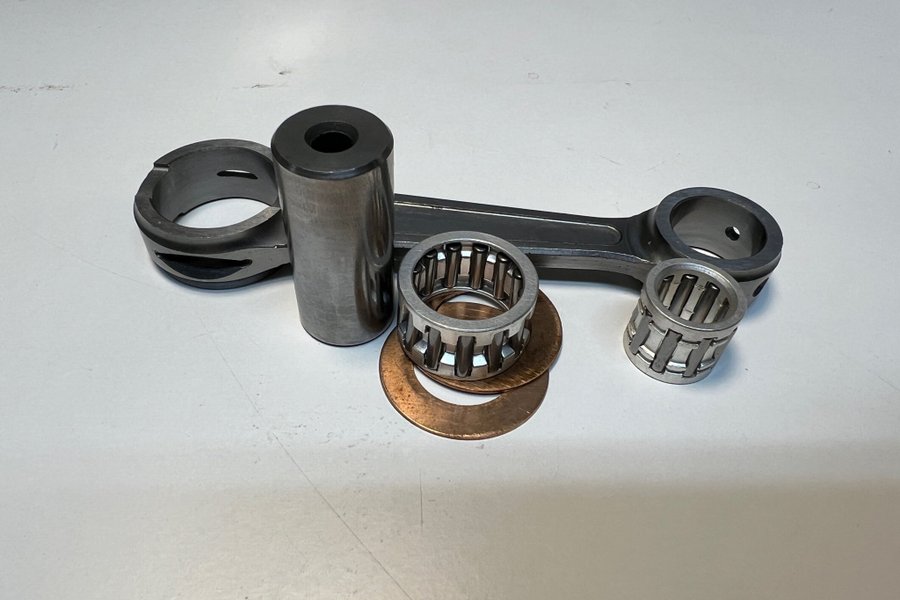 Ny ej monterad vevstake 95mm lång, storändan diameter 18mm bult (längd 38,2mm), bredd med brickor 14,9mm. Lilländan 17mm med nållager för 12mm kolvbult. Används ofta till Zundapp byggen