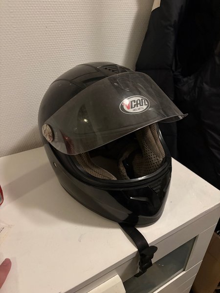 Säljer en svart MC hjälm. Märke: CAN Helmets. Hjälmen är ganska slitet visiren behöver bytas ut dock har inga ersättningar. Hjälmen. Har repor ett par ställen :)