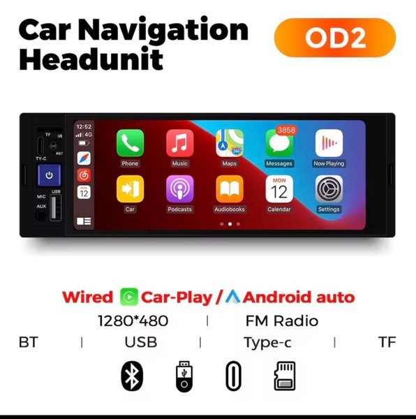 Bil Navigation Headunit med stöd för Wired Car-Play och Android Auto.