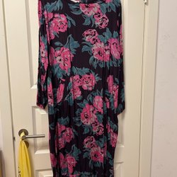 Blå stickad tunika i viskos med korta ärmar och detaljerat stickmönster vid halsringningen och nederkanten. Tunikan har en fin passform. Köpt i Barcelona, använts enstaka gång, mycket bra skick, dyr vid inköp.