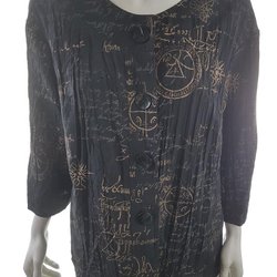Almia Storlek 38 Svart Knäppt Tunika Blus Viskos 100% Långärmad